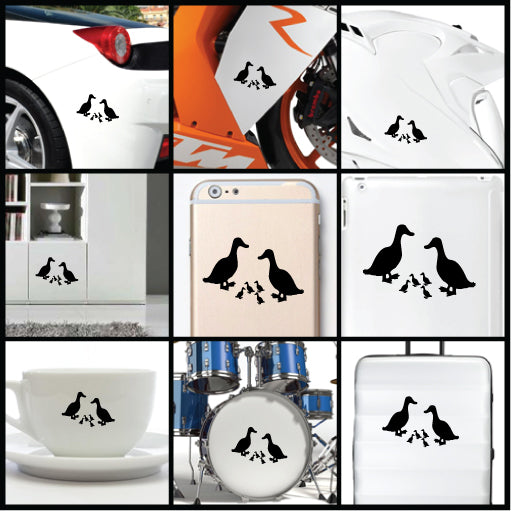 Color: There are 13 color for Duck Family Vinyl Sticker. They are Black, White, Yellow, Orange, Red, Green, Dark Green, Blue, Dark Blue, Pink, Purple, Silver, and Gold. The default color is black.