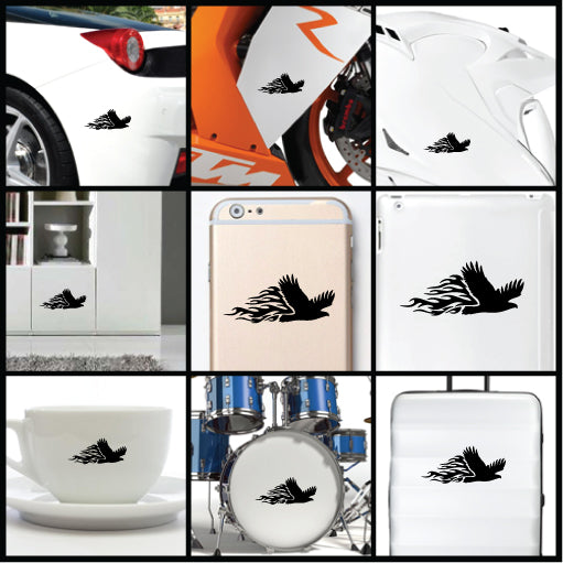 Color: There are 13 color for Eagle Flame Away Vinyl Sticker. They are Black, White, Yellow, Orange, Red, Green, Dark Green, Blue, Dark Blue, Pink, Purple, Silver, and Gold. The default color is black.
