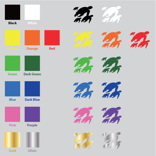 Color: There are 13 color for Sea Turtle Family Vinyl Sticker. They are Black, White, Yellow, Orange, Red, Green, Dark Green, Blue, Dark Blue, Pink, Purple, Silver, and Gold. The default color is black.