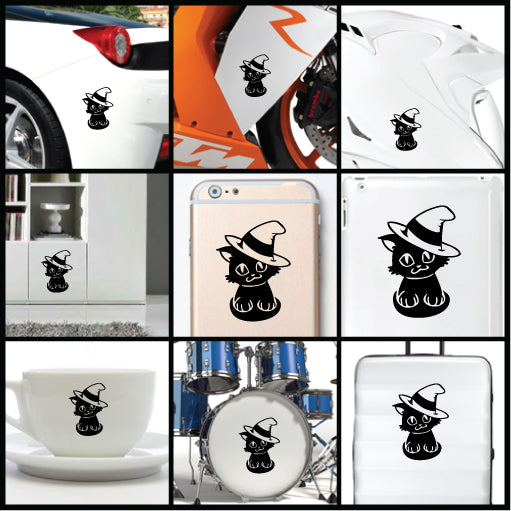 Color: There are 13 color for Cat Halloween Costume Vinyl Sticker. They are Black, White, Yellow, Orange, Red, Green, Dark Green, Blue, Dark Blue, Pink, Purple, Silver, and Gold. The default color is black.