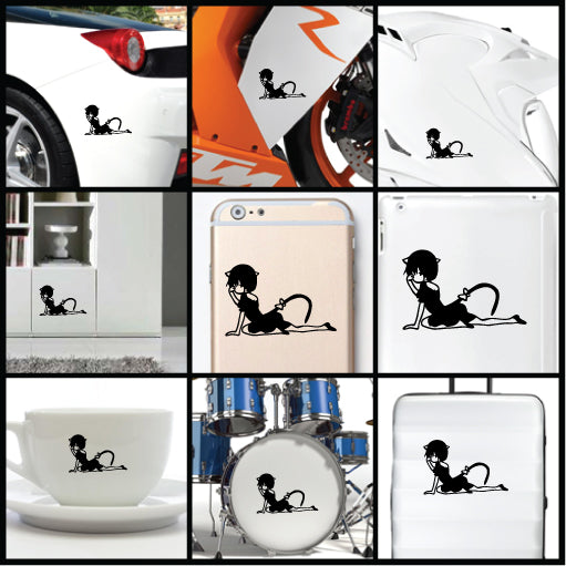 Color: There are 13 color for Girl Cat Cosplay Wake Up Vinyl Sticker. They are Black, White, Yellow, Orange, Red, Green, Dark Green, Blue, Dark Blue, Pink, Purple, Silver, and Gold. The default color is black.