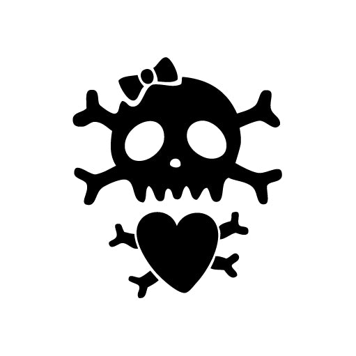 Color: There are 13 color for Skull Bone Bow Heart Vinyl Sticker. They are Black, White, Yellow, Orange, Red, Green, Dark Green, Blue, Dark Blue, Pink, Purple, Silver, and Gold. The default color is black.