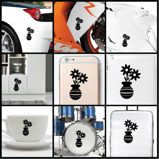 Color: There are 13 color for Flower In Vase Vinyl Sticker. They are Black, White, Yellow, Orange, Red, Green, Dark Green, Blue, Dark Blue, Pink, Purple, Silver, and Gold. The default color is black.