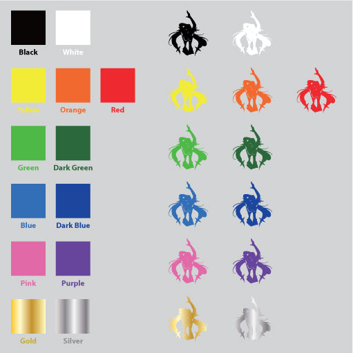 Color: There are 13 color for Assassin Look Vinyl Sticker. They are Black, White, Yellow, Orange, Red, Green, Dark Green, Blue, Dark Blue, Pink, Purple, Silver, and Gold. The default color is black.