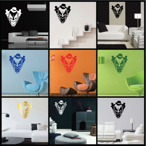 Color: There are 13 color for Clown Evil Laugh Vinyl Sticker. They are Black, White, Yellow, Orange, Red, Green, Dark Green, Blue, Dark Blue, Pink, Purple, Silver, and Gold. The default color is black.