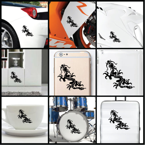 Color: There are 13 color for Dragon Swim Through Vinyl Sticker. They are Black, White, Yellow, Orange, Red, Green, Dark Green, Blue, Dark Blue, Pink, Purple, Silver, and Gold. The default color is black.