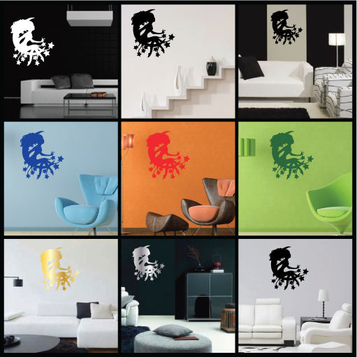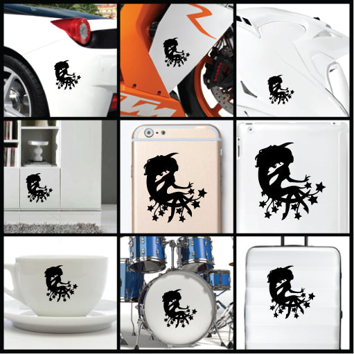 Color: There are 13 color for Girl On Moon Vinyl Sticker. They are Black, White, Yellow, Orange, Red, Green, Dark Green, Blue, Dark Blue, Pink, Purple, Silver, and Gold. The default color is black.