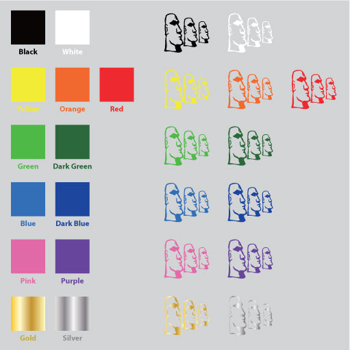 Color: There are 13 color for Stone Head Mystery Vinyl Sticker. They are Black, White, Yellow, Orange, Red, Green, Dark Green, Blue, Dark Blue, Pink, Purple, Silver, and Gold. The default color is black.
