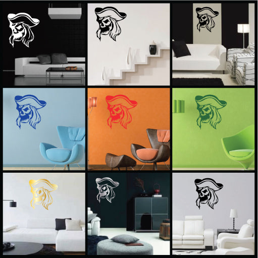 Color: There are 13 color for Zombie Pirate Vinyl Sticker. They are Black, White, Yellow, Orange, Red, Green, Dark Green, Blue, Dark Blue, Pink, Purple, Silver, and Gold. The default color is black.