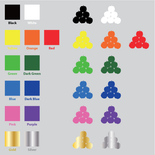 Color: There are 13 color for Apple Tower Pyramid Vinyl Sticker. They are Black, White, Yellow, Orange, Red, Green, Dark Green, Blue, Dark Blue, Pink, Purple, Silver, and Gold. The default color is black.