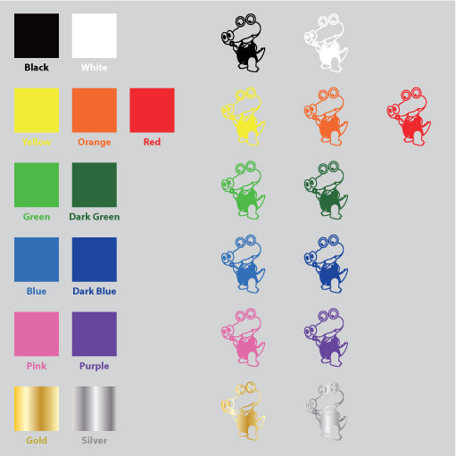 Color: There are 13 color for Crocodile Wait For Love Vinyl Sticker. They are Black, White, Yellow, Orange, Red, Green, Dark Green, Blue, Dark Blue, Pink, Purple, Silver, and Gold. The default color is black.