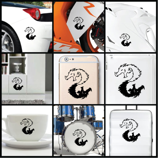Color: There are 13 color for Dragon Double Head Yin Yang Vinyl Sticker. They are Black, White, Yellow, Orange, Red, Green, Dark Green, Blue, Dark Blue, Pink, Purple, Silver, and Gold. The default color is black.