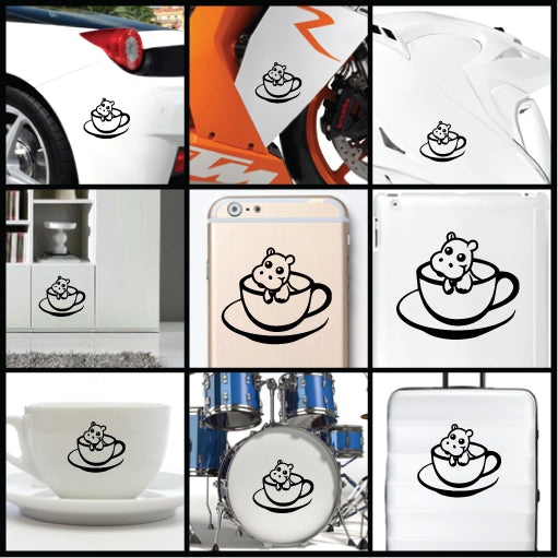 Size: There are 4 size for Hippo Cup Of Cuteness Vinyl Sticker. They are Regular, Large, Medium, and Small. For Regular size, the option is between 10cm and 15cm. The default size is 12cm (about 5 inches). For Large size, the option is between 50cm and 60cm. The default size is 50cm (about 20 inches). For Medium size, the option is between 20cm and 30cm. The default size is 20cm (about 8 inches). For Small size, the option is between 5cm and 8cm. The default size is 8cm (about 3 inches).