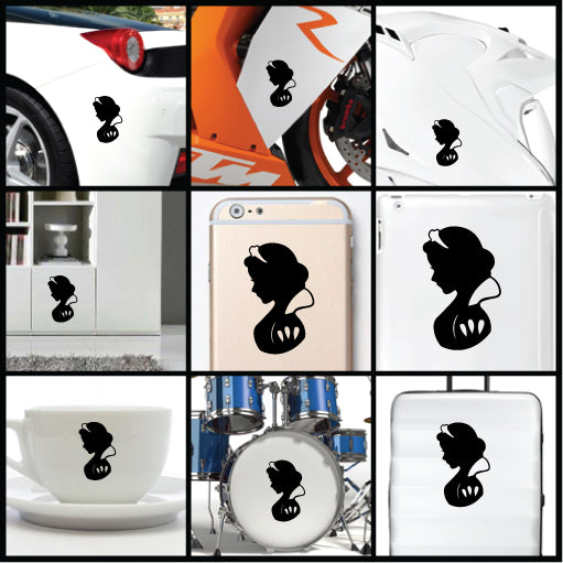 Color: There are 13 color for Princess Snow White Side Vinyl Sticker. They are Black, White, Yellow, Orange, Red, Green, Dark Green, Blue, Dark Blue, Pink, Purple, Silver, and Gold. The default color is black.
